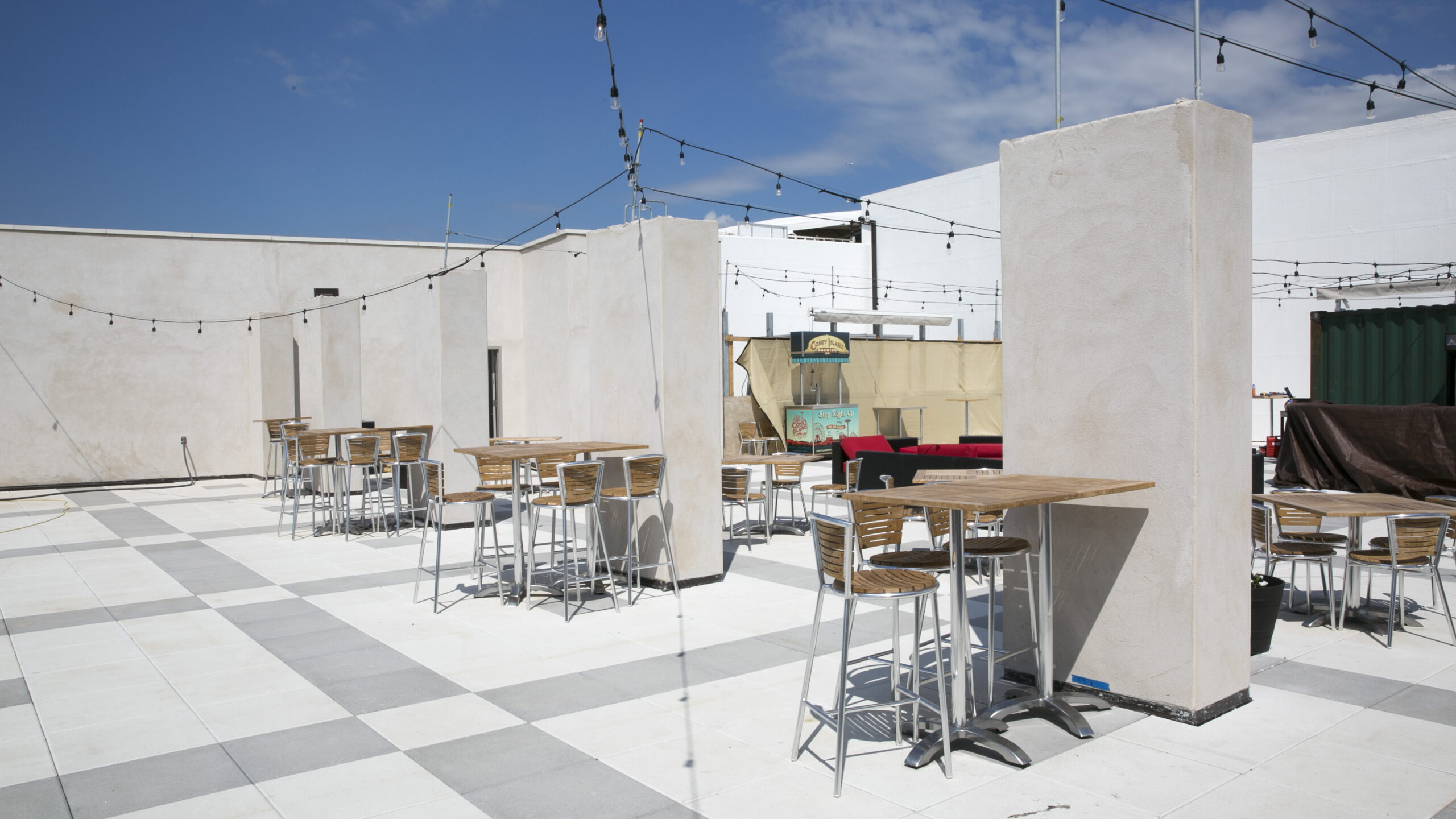 In addition, the building’s western wall was damaged during a massive multi-block fire in 1932, so the exterior wythe of brick had to be removed and replaced. Finally, the center section of the west wall was removed for the opening of the amphitheater stage and a roof top bar was constructed.