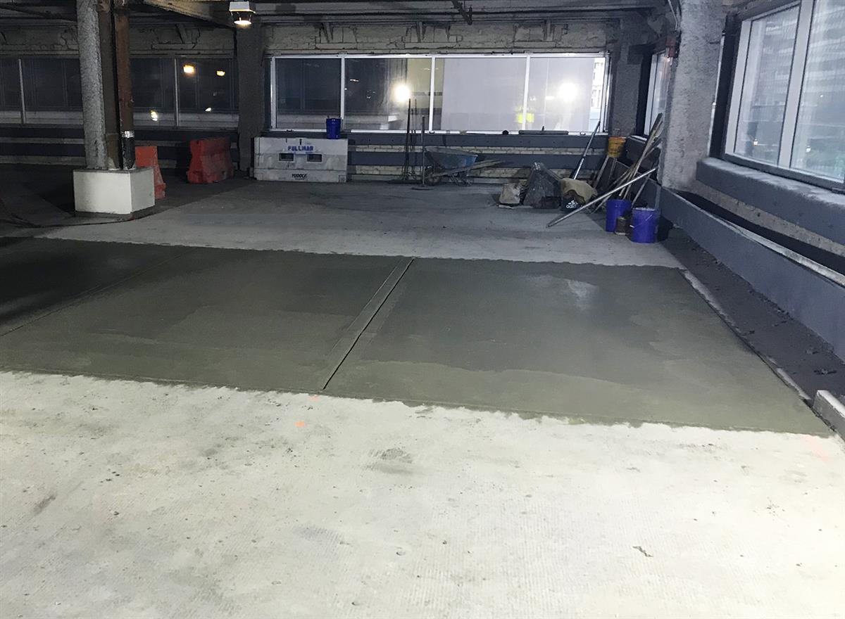 The project’s scope of work included 7,000 SF of full-depth concrete repairs, steel pan decking, steel replacement, and beam reinforcement of the garage structure. Coating and fireproofing were removed and disposed of. Shoring and 75,000 SF of traffic-bearing membrane were installed.