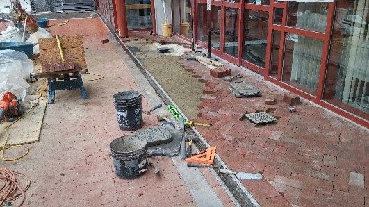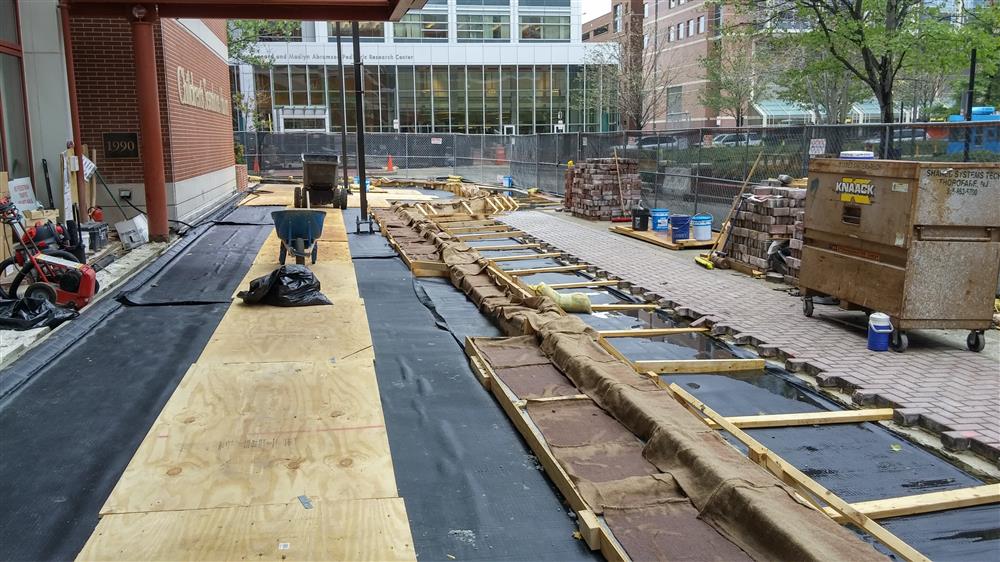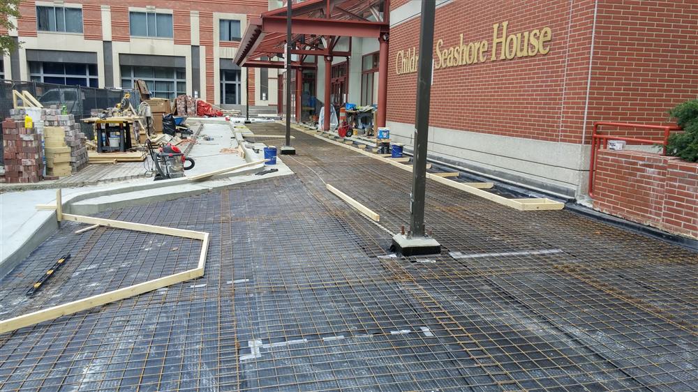 The Children’s Hospital of Philadelphia (CHOP) Plaza encompasses the entrance area at the front of the Wood Center building. Water was infiltrating the Plaza, requiring repairs to preserve the structure.