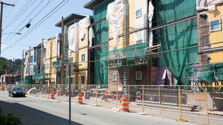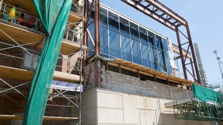 During the construction phase, additional deficient conditions were uncovered that posed design challenges for the compatibility between the new façade and the existing structural components of the building. PULLMAN and WDP developed unique details to accommodate these conditions and ensure that the project was not delayed. Crews had to remove nearly 20,000 square feet of the existing brick exterior to address the additional structural repairs.