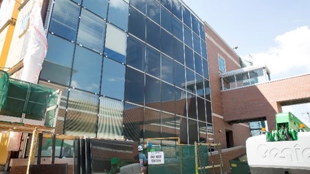 The design involved a complete removal of the building’s exterior, requiring temporary enclosures to protect interior finishes and building occupants. In addition to brick replacement, the scope included installation of new barrier and thermal insulation to enhance energy performance, a new monumental limestone arch, a new curtain wall, and improved glazing. The team included a phased demolition and construction plan to ensure minimal disruption to the building occupants.