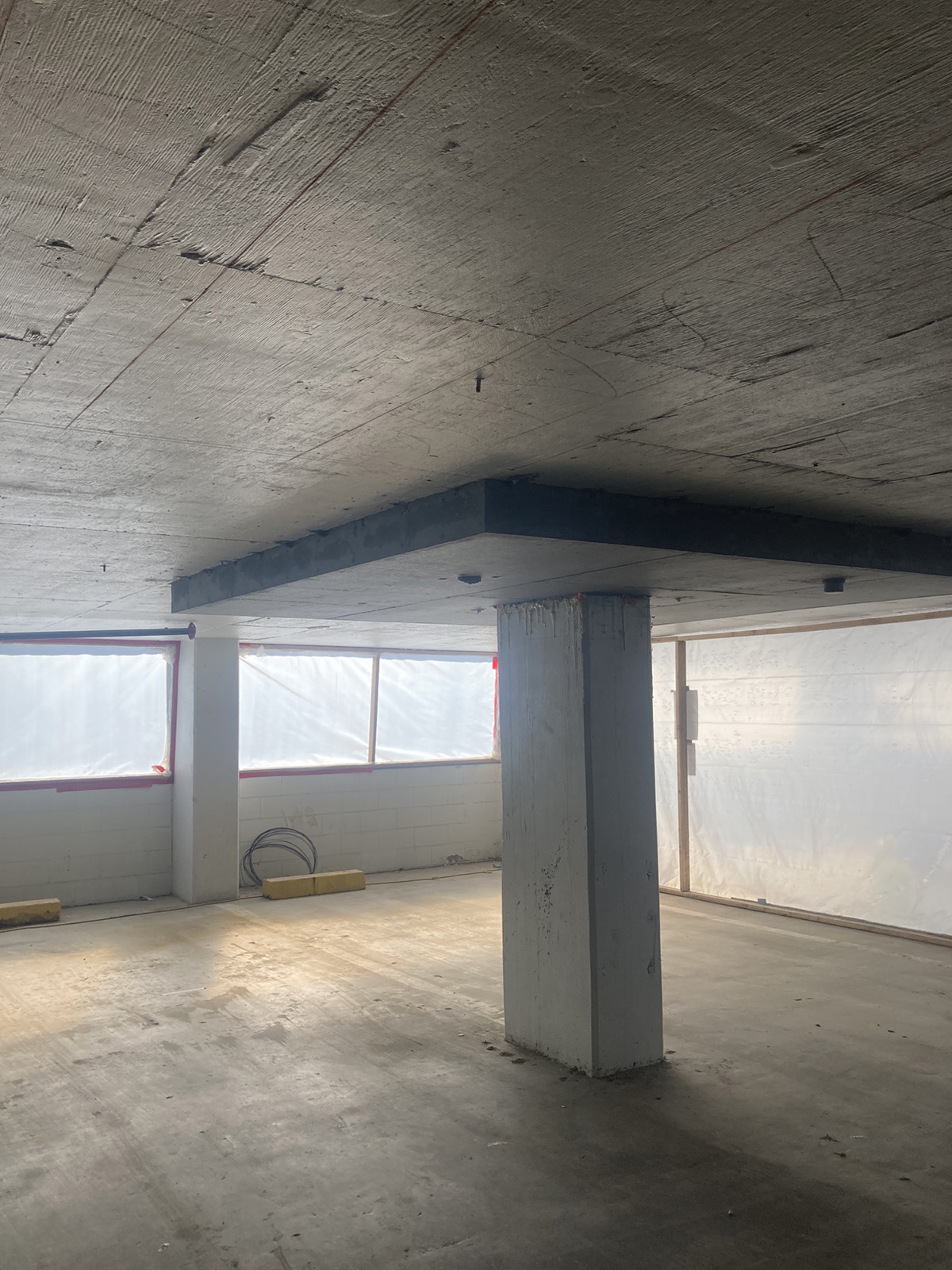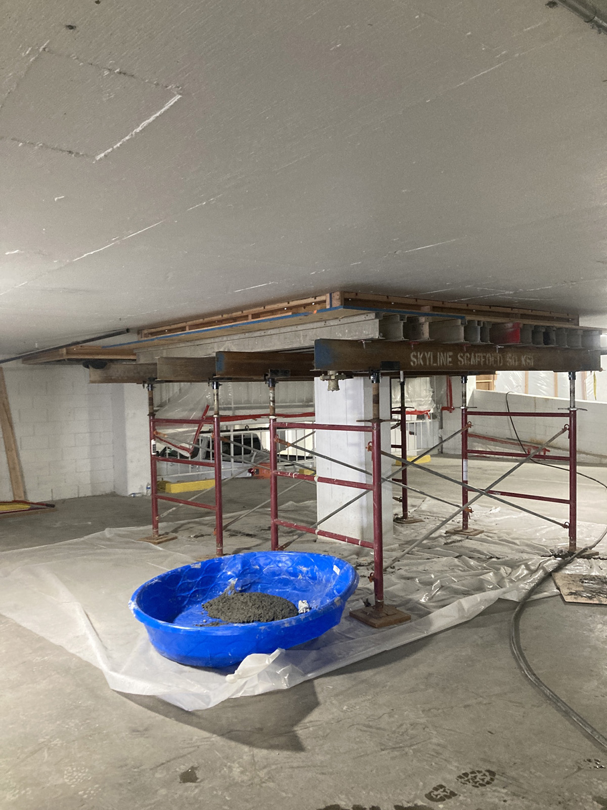 To address these issues, STRUCTURAL TECHNOLOGIES designed cast-in-place concrete enlargements, incorporating drop panels at deficient column and shear caps for reinforcement. The team then supplied CSS V-Wrap™ Systems to strengthen the structure, effectively resisting both positive bending forces at mid-span and negative bending forces at the supports.