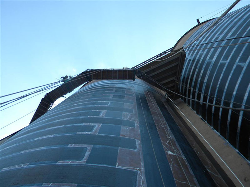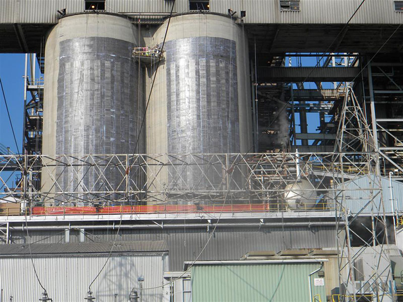 These silos were made of reinforced concrete and built in the 1960s and have conjoined walls. Measuring 41-feet in diameter and 80-feet tall, the silos are staged on a structural steel frame above grade and are top-fed from two trippers. Silo upgrades were performed for the following reasons: